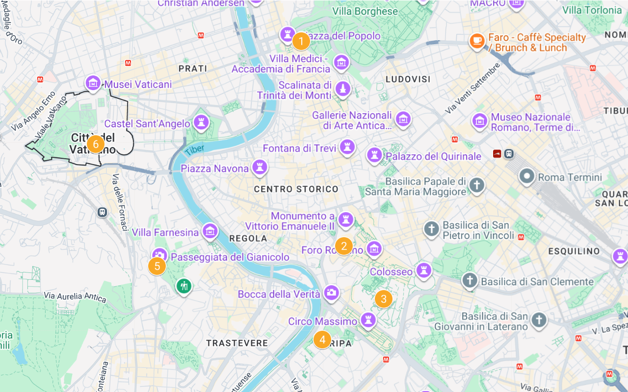Karte der besten Aussichtspunkte in Rom